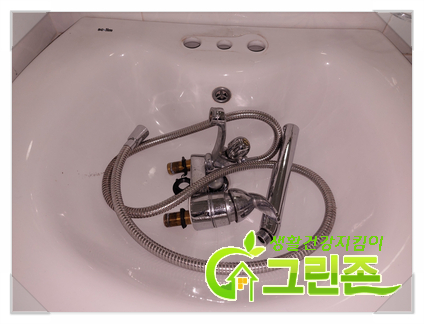 샤워겸용수전이 없어 수전을 준비한후 다음날 화장실 세면대샤워겸용 수전을 깔끔하게